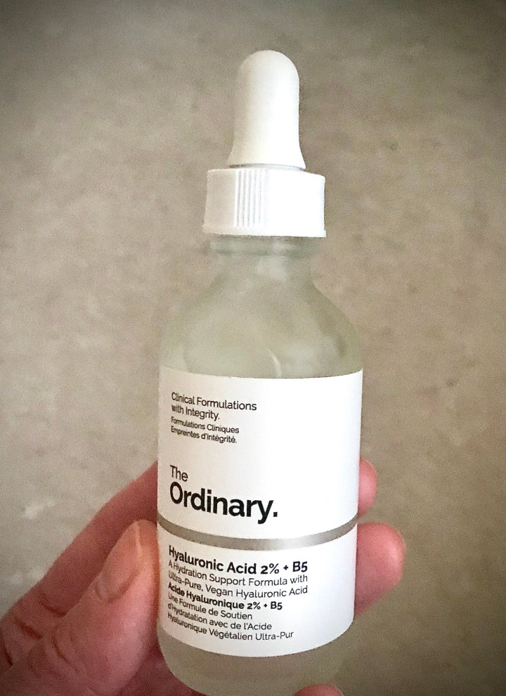 After splashing my face with cool water I massage a couple of drops of The Ordinary Hyaluronic Acid 2% + B5 serum into my skin (an absolute steal at just over £10 for 60ml). This has really helped alleviate flakiness and smooth my overall complexion, it’s also available at Boots so you can bag some points!