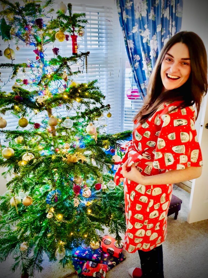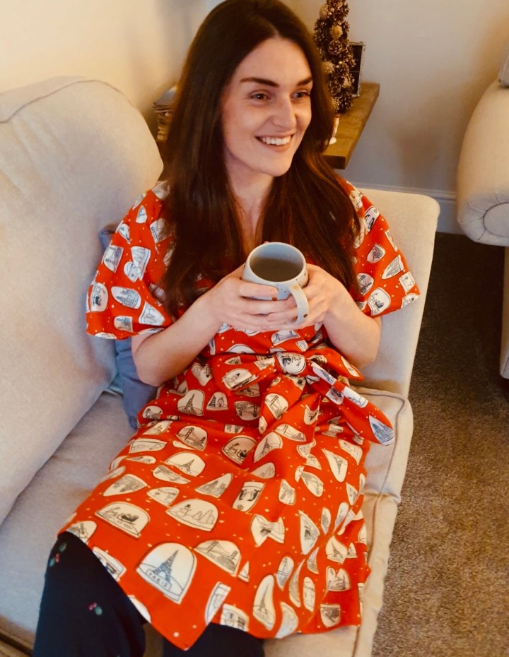 Happy Christmas, folks! I hope you’re enjoying some quality time with family and friends as well as an abundance of yummy treats! One of my favourite things about this time of year is the unspoken rule that you can don your cosy loungewear all day long. Don’t get me wrong, I love dressing up and wearing something sparkly, but for those relaxed days at home a simple, festive robe is great for throwing on over pjs or for adding a festive touch to your daytime attire.