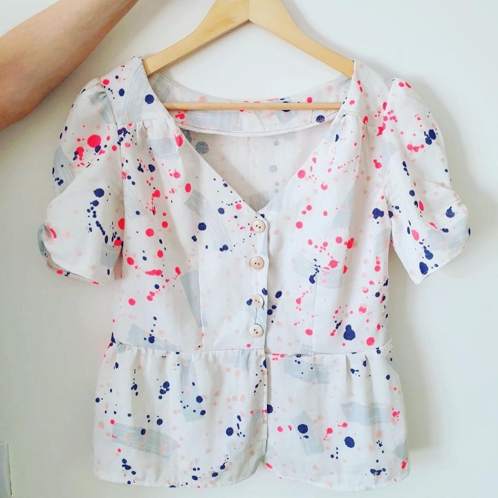 When I made the Kew dress, I had a bit of trouble stitching the buttonholes and unfortunately this top was no exception. For some reason unknown to me my machine wouldn’t feed through the fabric when I was stitching the buttonholes so I was ending up with big clumps of thread and stretched out evenings with my trusty thread picker. It had managed to stitch a couple of holes but to avoid ripped fabric I hand-stitched the rest.