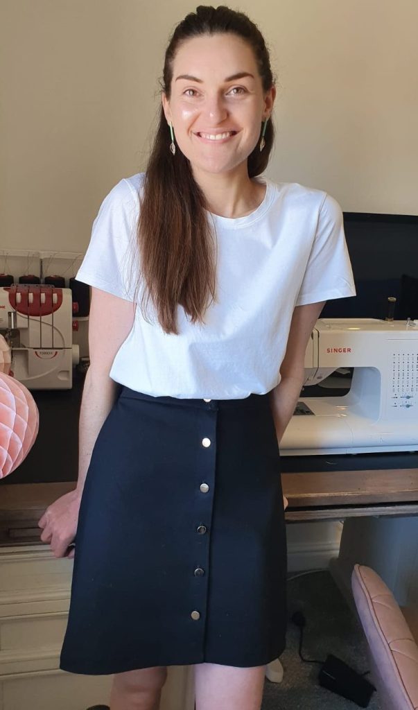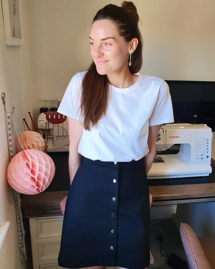 Two years ago I spotted my dream skirt. Back then, the closest I’d come to dressmaking was sewing a simple cushion in a home economics class, I never dreamed that I’d be able to navigate a sewing machine and understand different types of fabric. I remember walking into a high-street store where I spotted what, in my eyes, was the holy grail of a denim mini skirt. Cinched waistband worn high, easing into a subtle A-line silhouette and finished with a button-fronted placket. This was the season-spanning essential I was hankering for, the versatile garment that would unite my jigsaw of clothing. But after giddily turning the skirt back and forth on its hanger, hoping the image I had of myself in it would soon be a reality, the price tag quickly brought my sartorial fantasy crashing down to earth.