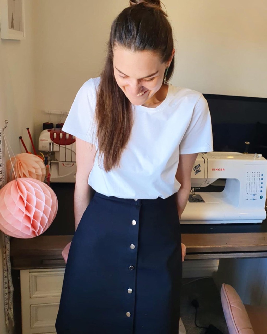 I played it safe when it came to topstitching, there are plenty of opportunities to get playful with your finishes but I’m not quite at that stage where I feel confident topstitching in a contrasting colour thread. Saying that, I am really pleased with how neat my skirt turned out, no major wobbles! My machine even managed one buttonhole without me guiding the foot back and forth so that was a bonus!