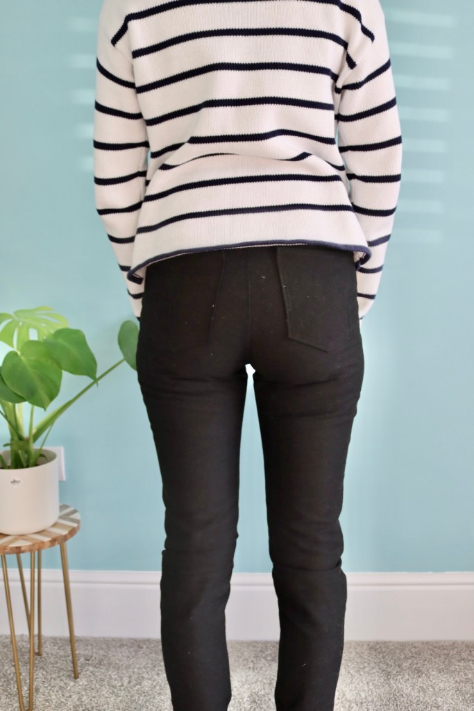 I opted for view A – the tapered leg – which is the most fitted of the styles included in the pattern. To determine my size, I referred to the finished garment measurements and made a size 8 throughout (I’m 34″ bust, 28″ waist and 39″ hip). The jeans are quite close fitting but will stretch over time, if you are between sizes I’d recommend sizing up, you can always take the jeans in if the fit feels too loose.
