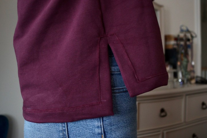 I referred to the finished garment measurements and sewed a size small throughout. The sweater features a pretty high-low hem with a vent at the side seams. The bottom hem in quite wide when folded up and I think in hindsight, I would have trimmed this slightly and finished the edges with an overlocker before sewing. It doesn’t really affect the outer appearance of the garment but it would have made it look a tad neater on the inside.