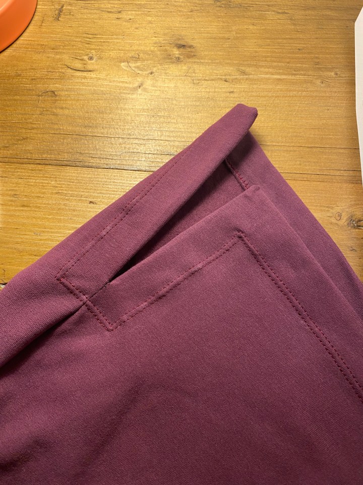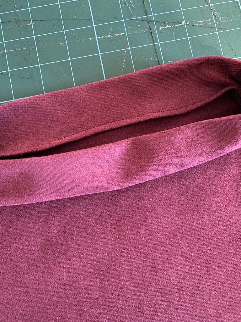 In terms of final tweaks and amendments, on the neckline facing I folded the overlocked edge under and sewed a narrow hem (see image) to give the inside of the garment a neater finish.