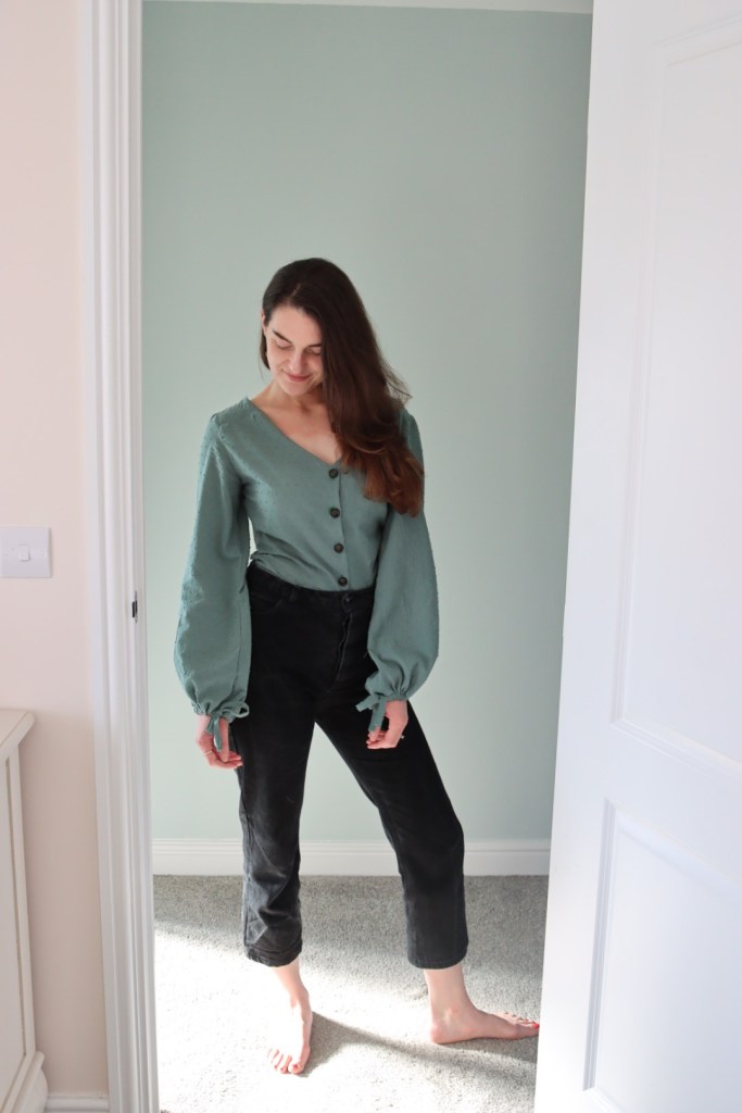 To make the top, I’d used the bodice from the Nina Lee Kew pattern, version one. I didn’t make any changes to the bodice except to add two inches to the length so it’s just long enough to tuck into high-waisted jeans. I think my measurements may have been slightly off somewhere as the top is quite roomy and gapes at the back but I think teaming it with a cami top underneath will help.