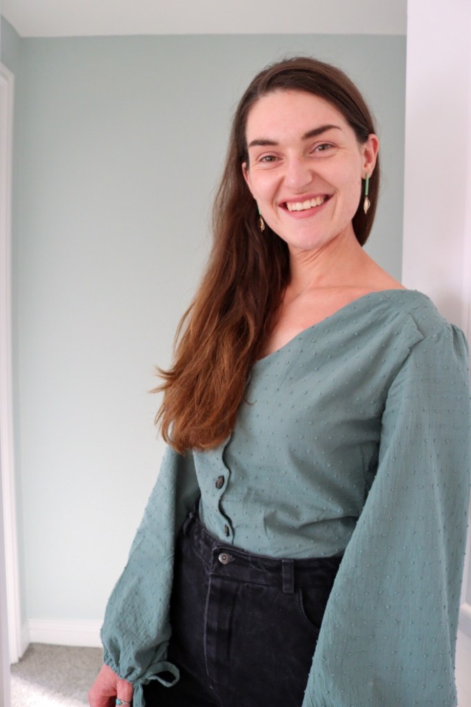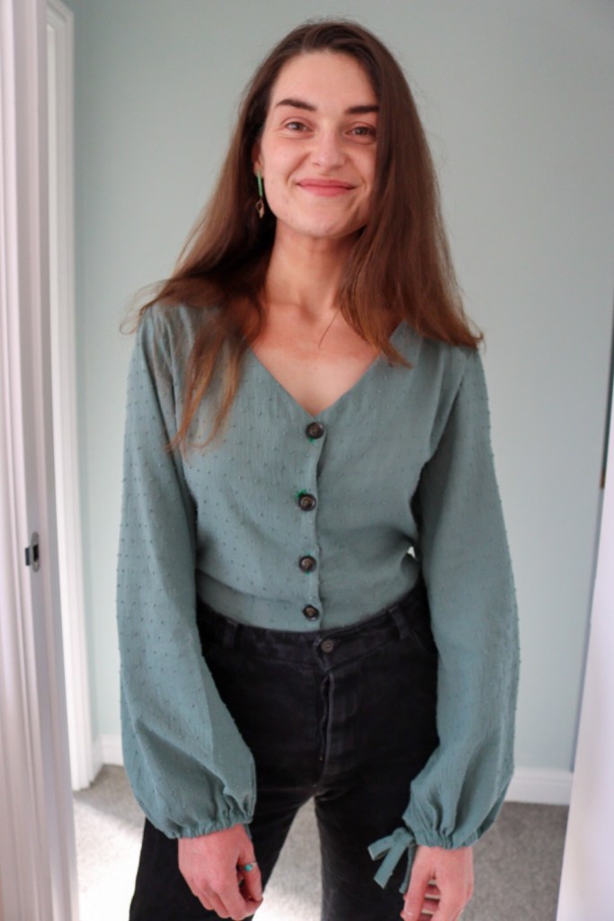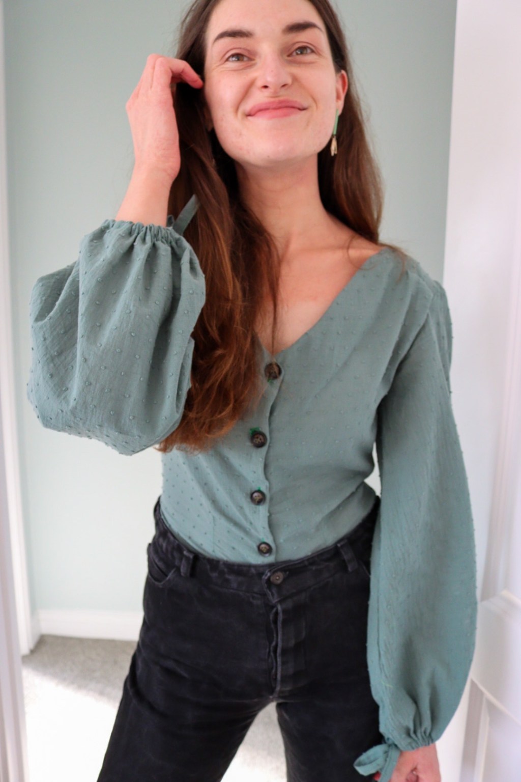 So what do you do when the patterns you’d previously been swooning over don’t have the same appeal? For me, the answer was to pick out my favourite features from patterns I already owned – and love – and merge them together. As I wear trousers more than dresses I wanted something I could pair with high-waisted jeans. Now, since my sewjo has been MIA recently, I did wing this make slightly, and the top isn’t without its faults (buttonholes I’m looking at you) but it felt good to just be sewing something again and I think all in all, it turned out pretty much how I’d hoped. When it came to choosing patterns, I reached for my trusty Nina Lee Kew pattern, I’d made variations of this before and love the shape and details of the bodice. For the sleeves, I opted for the By Hand London Hannah pattern – the bishop sleeve design is so up my street.