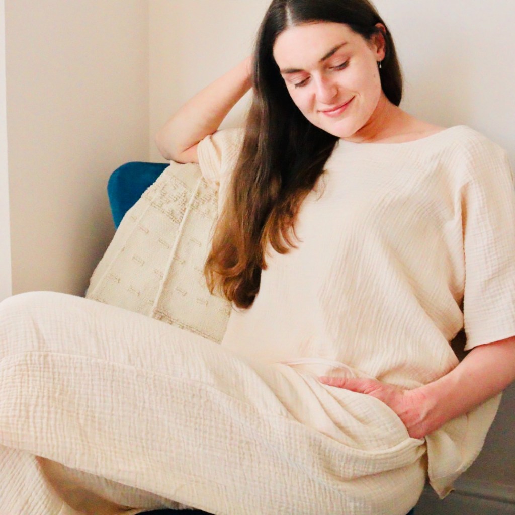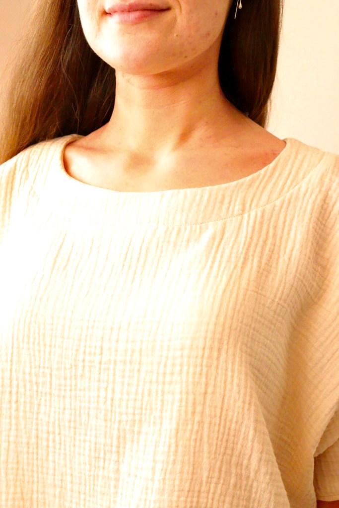 I’ve always had a soft spot for double gauze. As someone with sensitive skin, I’m always on the lookout for super-soft fabrics and double gauze always comes up trumps. I used a organic double gauze – GOTS fabric in oatmeal from Frumble Fabrics. It was really reasonable for an organic fabric and I’m hopeful I can squeeze another top from the fabric I have leftover.