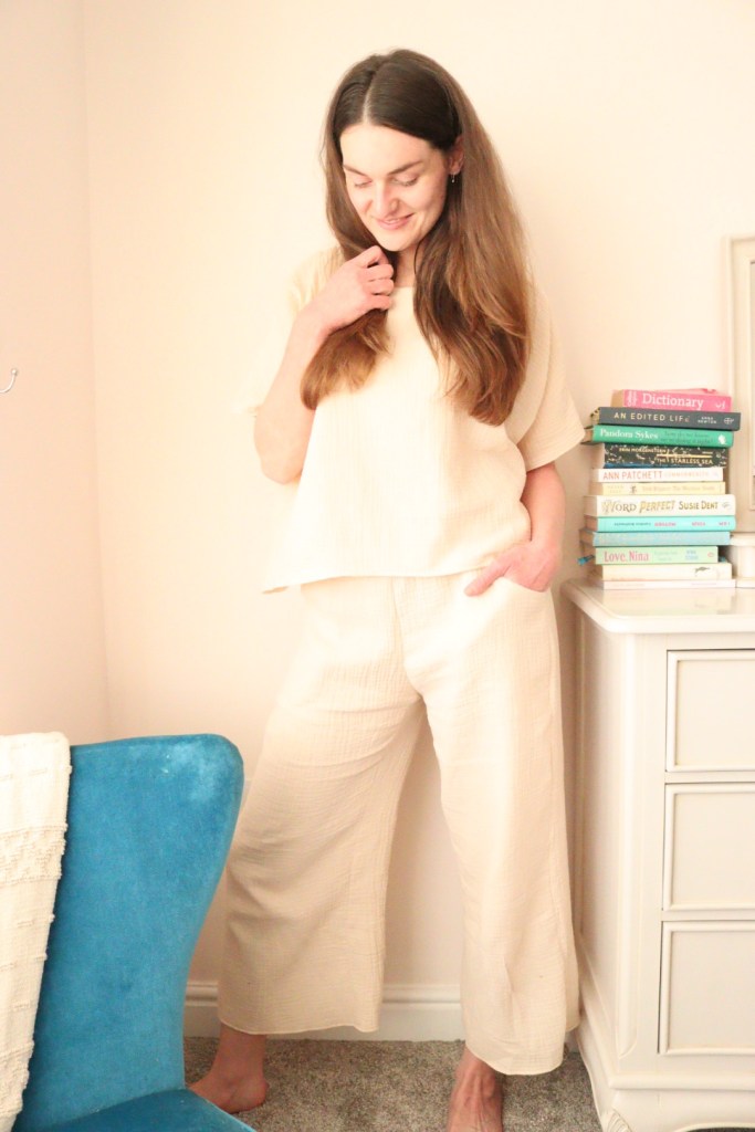 Where do you fall on the PJ spectrum? Are you diligent with your matching sets beyond the festive season when you’ve suddenly found yourself the happy owner of M&S’s latest sleepwear collection, or are you more of a grab-a-baggy-t-shirt-and-go type? While I would love to say I had coordinated sleepwear covered, this was a sartorial space in which my options were desperately lacking. I have the necessary brushed cotton jammies with festive motifs that mum buys all her children every Christmas without fail but as the weather is getting warmer, wearing festive sleepwear doesn’t quite cut the mustard and means my poor boyfriend James is left wondering where all his t-shirts are disappearing to! I was a bit reluctant to buy a sleepwear pattern, the styles, while lovely, can for the most part seem quite tricky to sew. Luckily, Common Stitch had teamed up with Peppermint magazine to create a dreamy loungewear set and just like that, I knew that a set in a soft double gauze would help me drift off into a cosy sleep.