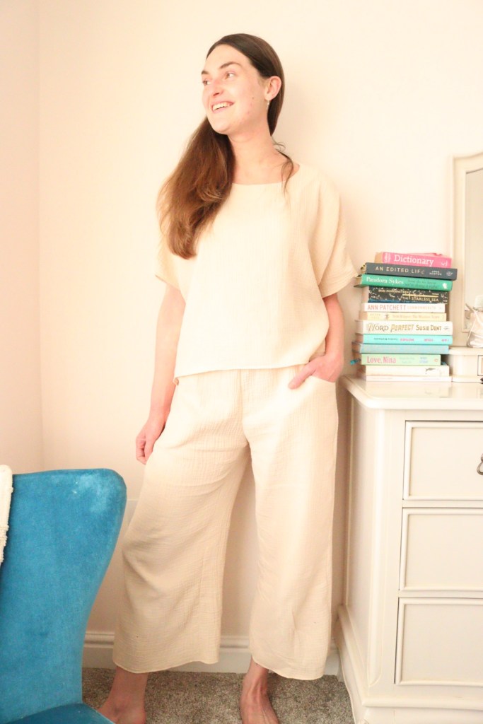 Having seen other sleepwear designs by Common Stitch I was delighted to discover they were the brains behind this easy-to-wear loungewear set. The pattern consists of a boxy, oversized top with dropped shoulder sleeves and loose, three quarter length trousers with an elastic waistband. If I needed to print the pattern again, I would probably send the file to a sewing shop to print off in A0 size instead. There are a lot of pages (53 to be exact) to make up this pattern, coupled with my printer losing the will to live and printing on 1.5 sheets of paper at a time, it did feel a little wasteful considering the amount of paper leftover after I’d cut out my size.