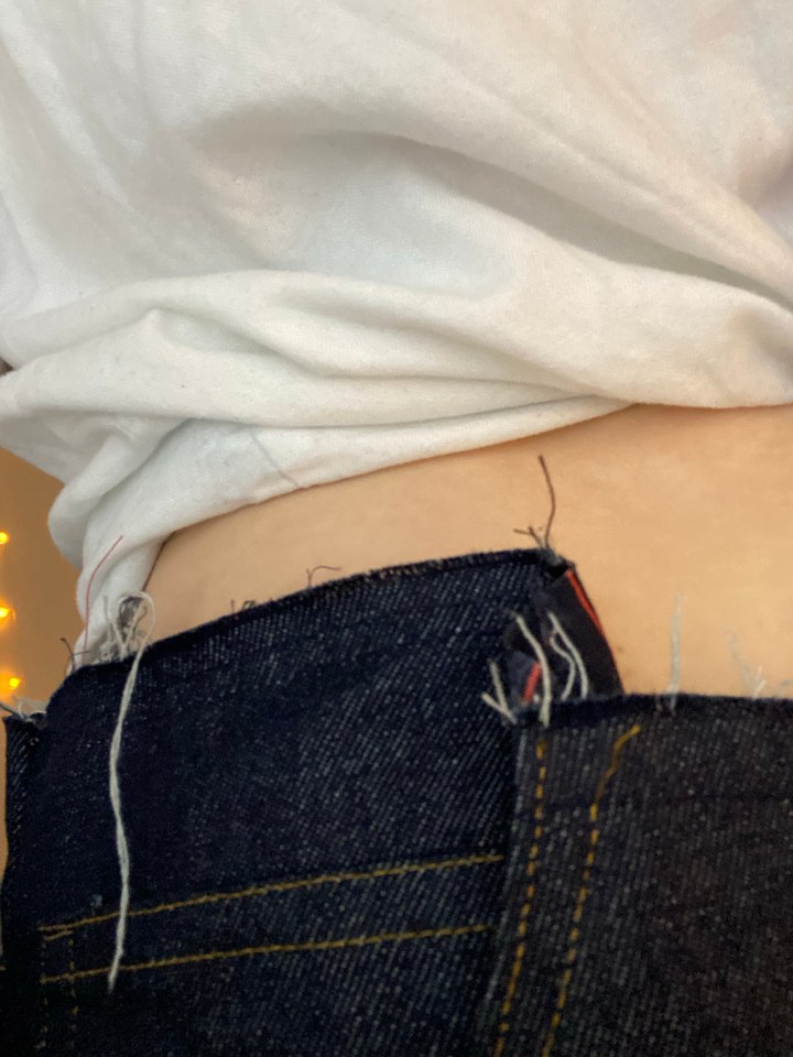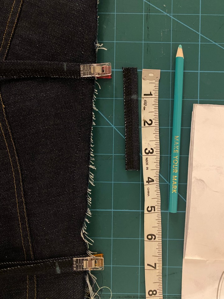Something I have struggled with when sewing jeans before is attaching the belt loops; instead of trying to squeeze the needle underneath the belt loop to attach it to your jeans, simply topstitch each end of the belt loops in place.