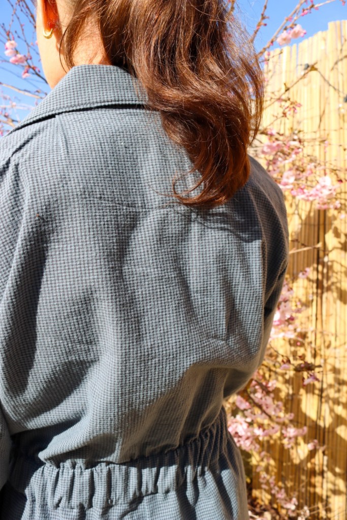 My first experience sewing the Jesse Jumpsuit by the Modern Sewing Co. was not without its challenges, but it taught me some good skills, and the garment I made was wearable, so that’s a plus! I knew the second time around I really had to take my time. It’s amazing how a notch improperly placed can throw the whole construction off balance. I sewed a bit each weekend over a series of weeks.
