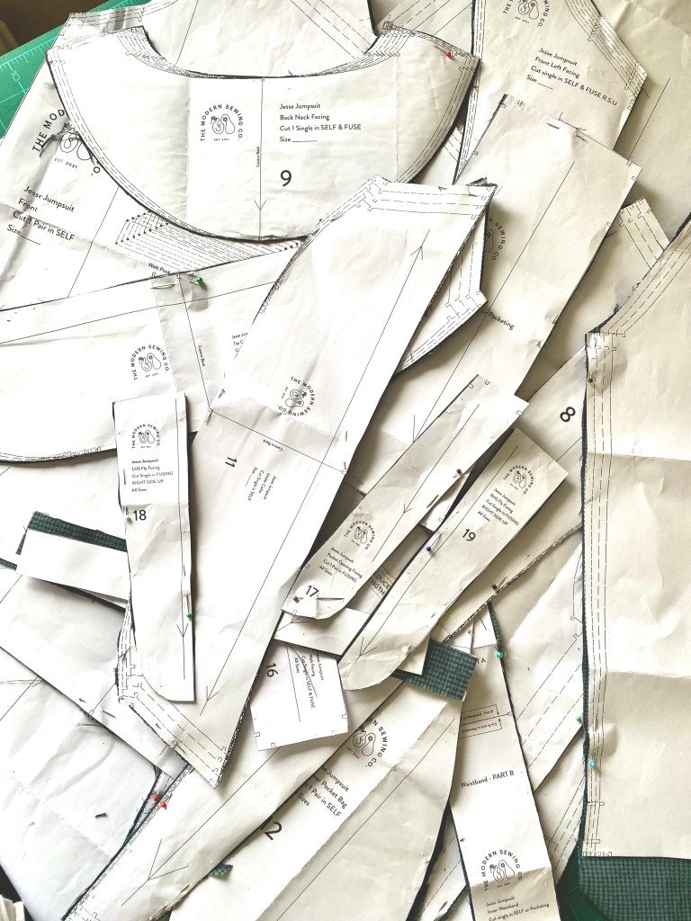 There are a lot of pattern pieces to cut out for the Jesse Jumpsuit, so it was so satisfying when all my fabric pieces were cut out, and I could start the fun part of sewing!