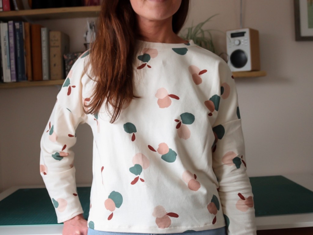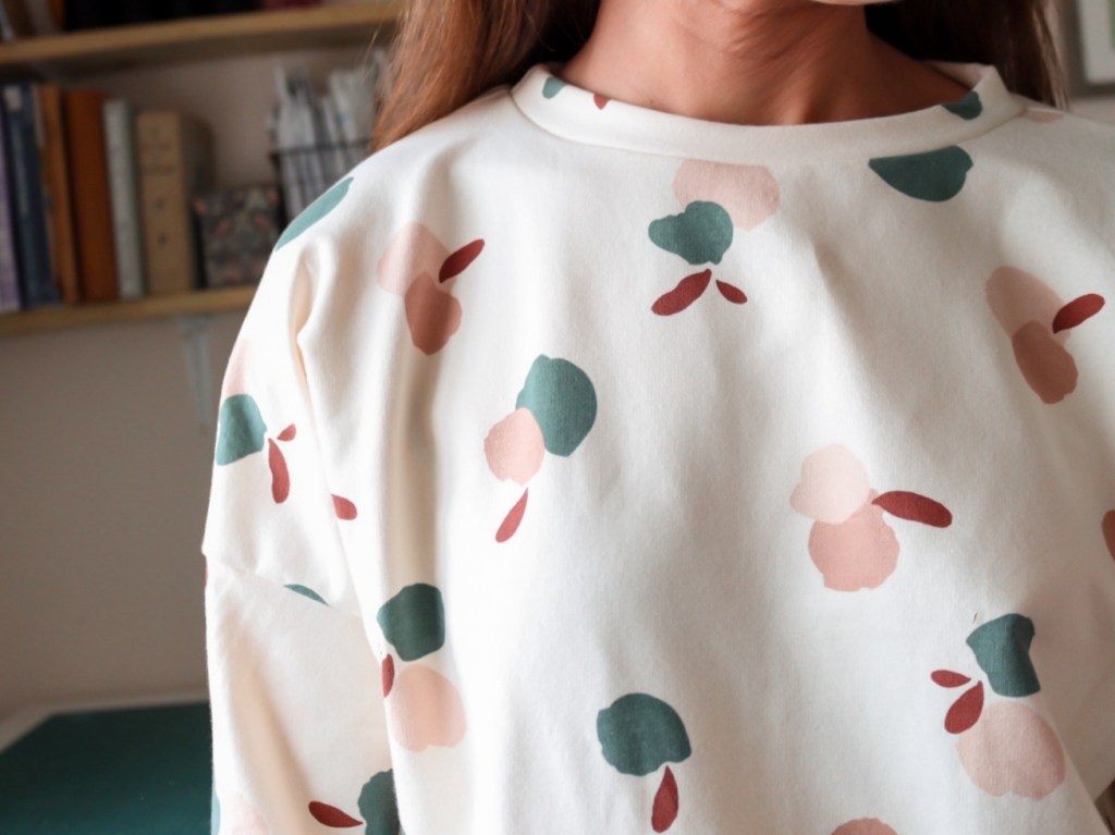 Like many of us, I’ve had to practice a bit more frugality in purchasing sewing items recently but this has equally encouraged me to dig into my fabric stash and think about how can I use those larger pieces of leftovers. I had less than a metre of Atelier Brunette’s sweatshirt fabric sitting dormant in my stash, not quite enough to accommodate the pattern, but I thought given the pullover’s roomy fit, I could make some tweaks.