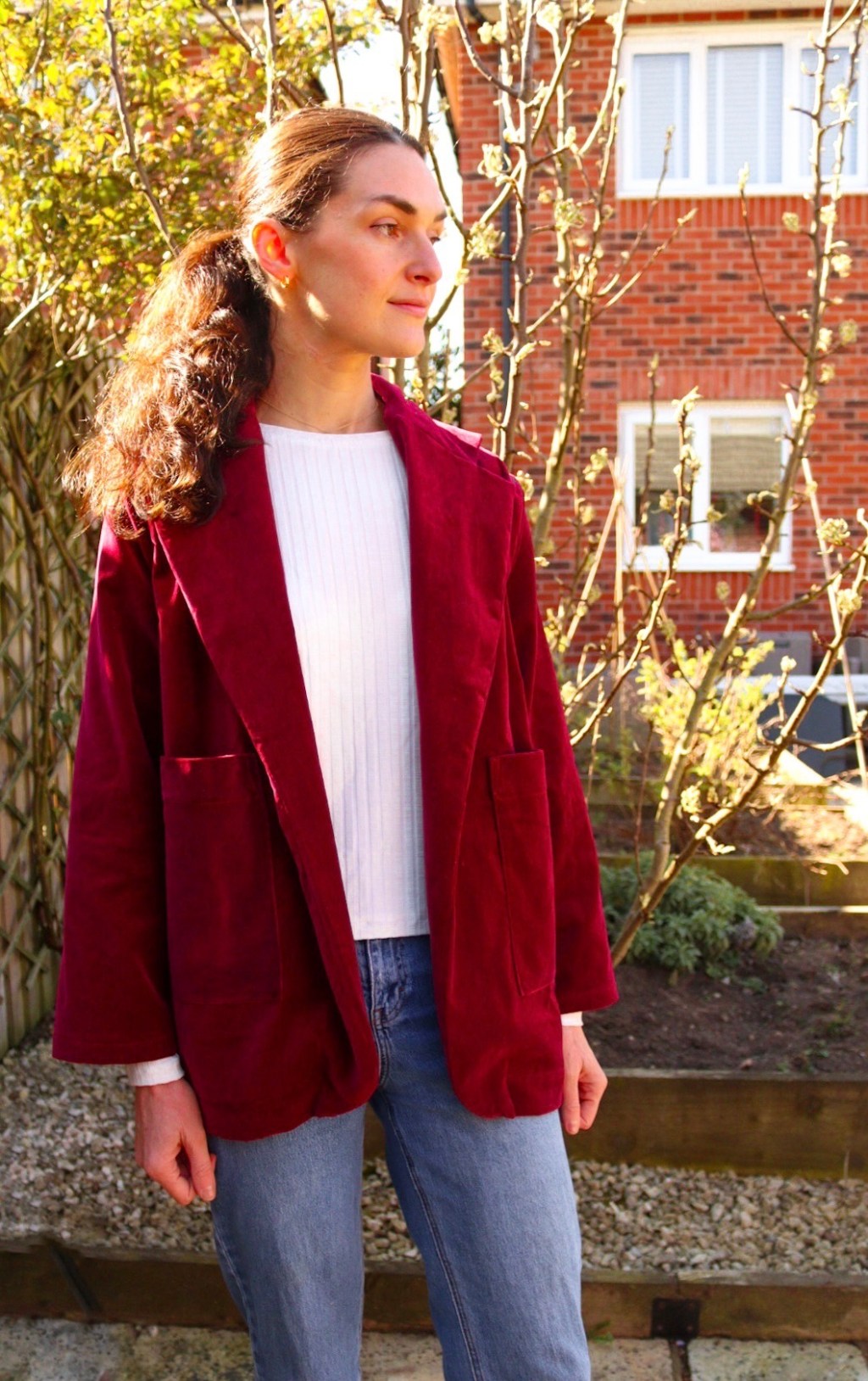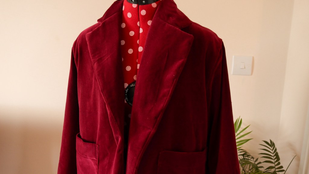 Few pieces in my wardrobe hold the level of versatility embodied by my humble blazer. Paired with dresses to jeans, formal outings to casual coffee meet-ups, it is a sartorial workhorse, a garment I couldn’t be without. I currently own three blazers – one black shop-bought, a second-hand tweed variation and now this oversized plum velvet version.