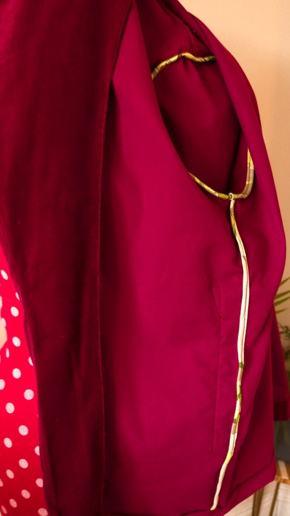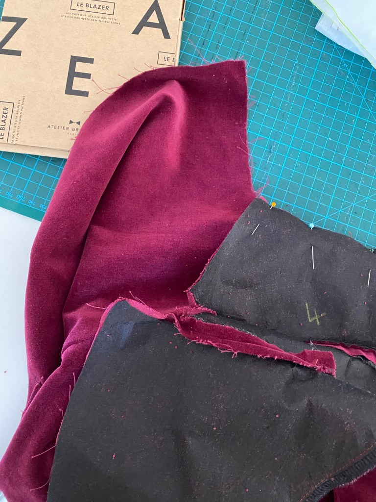 While I plan to pair Le Blazer pattern with Atelier Brunette’s gabardine fabric, I wanted a little practice run first, so I decided to use this woven velvet fabric I already had in my stash.