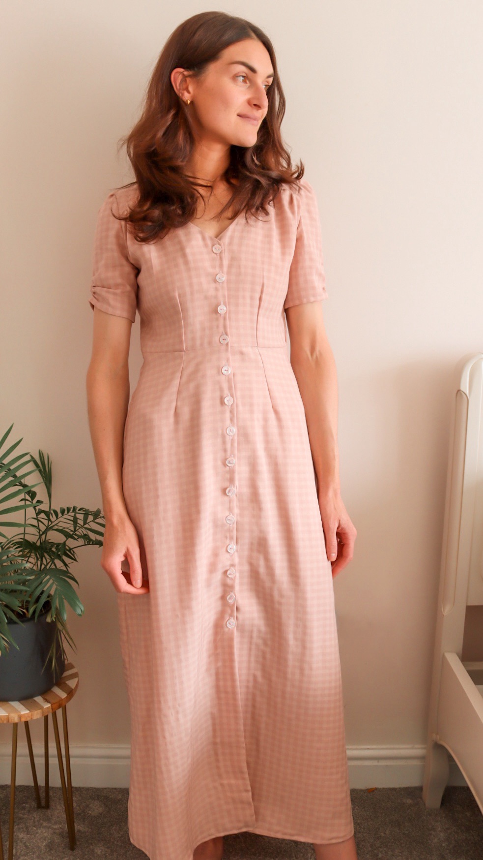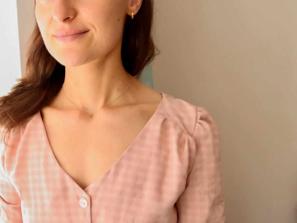 The instructions suggest sewing this version in light to medium-weight fabric with some drape. I recently purchased the Meet MILK Two-Tone Check Tencel Lyocell Twill Fabric in Powder Pink, which worked well. The subtle check design is just gorgeous, and the fabric feels soft next to the skin.