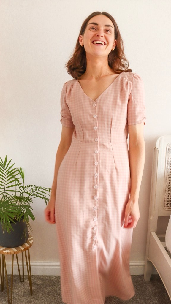 The Kew dress feels synonymous with summer style; it has a timeless quality, thanks to its nod to vintage design. You have three options to choose from: two dress styles and a skirt. I chose version 1 – a midi-button-front dress, featuring gathered sleeves, a high-low skirt, and front and back darts to create a flattering silhouette.